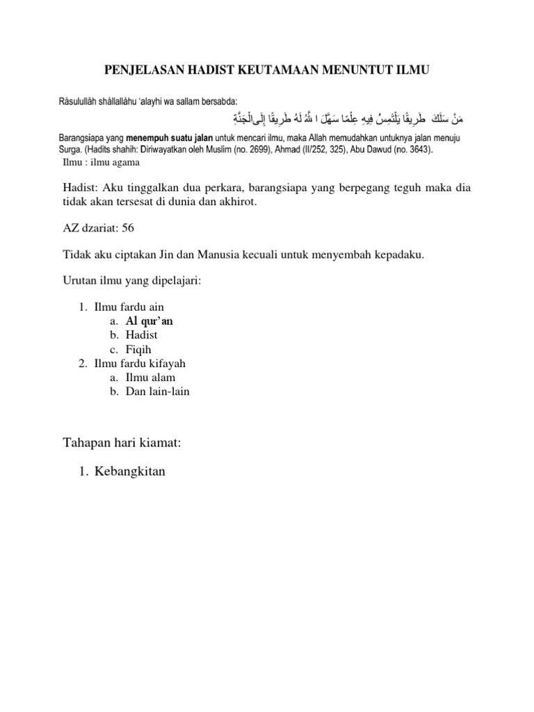 Doc Makalah Hadis Menuntut Ilmu Docx Bayu Sugara