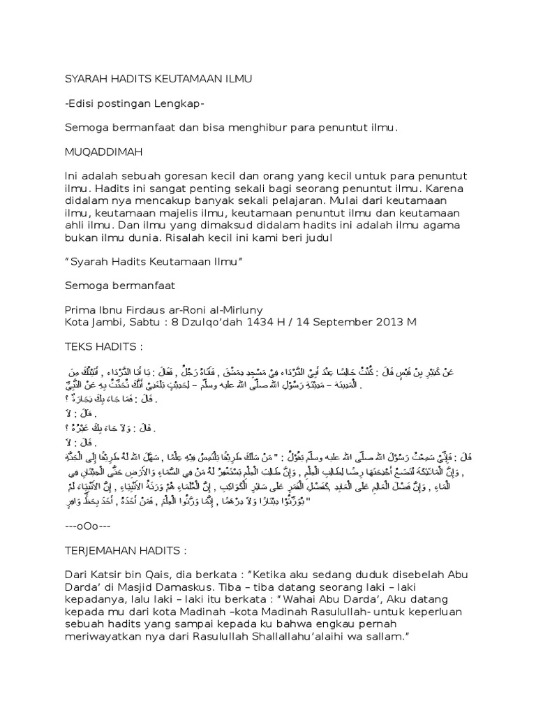 Syarah Hadits Keutamaan Ilmu Docx