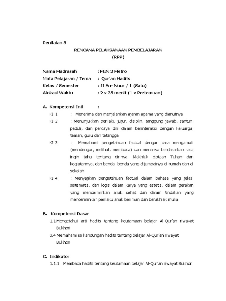 Rpp Hadits Keutamaan Belajar Al Qur An Doc